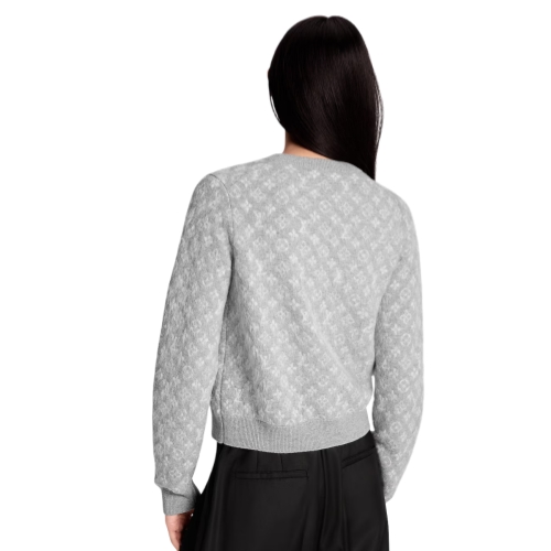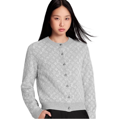 A contemporary twist on a classic style, this cardigan is crafted from a sumptuous wool, alpaca and cashmere blend in a fluffy brushed finish. It is signed all over with the Monogram motif in an understated two-tone colorway, while ribbing around the crew neckline, cuffs and waist frames the look. Elegant spherical silver-toned buttons fasten the front.