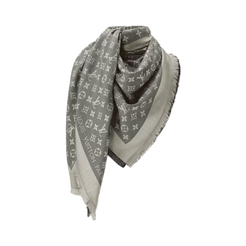 Ideal for everyday use, this luxuriously soft Monogram Denim shawl is subtle and very feminine. Entirely weaven in jacquard, it features the Louis Vuitton signature and the Monogram pattern.
