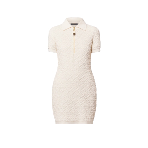 This chic polo dress is crafted from plush cotton-wool blend toweling that is discreetly signed all over with Monogram Flowers in relief and finished with ribbed hems. It is crafted in a casual short-sleeved shape with a sporty flat collar and a golden zipper on the chest, which is trimmed with a Monogram canvas pull.