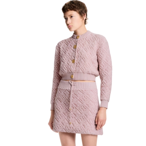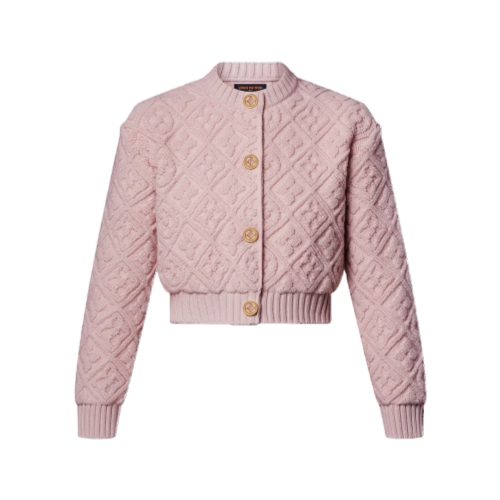 Crafted in a classic crew-neck shape, this cardigan is playfully reworked in this season’s signature toweling featuring the classic Monogram motif all over in relief, while the hems strike a contrast in a chunky ribbed finish. Graphic cut-out Monogram Flower buttons elevate the front fastening with a chic metallic accent.