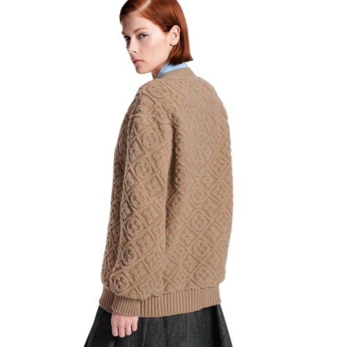 This cardigan is cozy and contemporary in a casual oversized fit spun from a sumptuous wool-cashmere blend in a plush toweling finish signed all over with Monogram Flower accents in relief. Chunky ribbed hems frame the look, while the front fastening is finished with playfully mismatched metallic Monogram Flower buttons for a spirited final signature.
