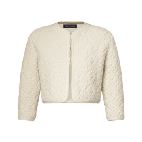 This jacket has understated appeal in a chic, cropped shape with three-quarter length sleeves and a clean-cut front, which is fastened with discreet three clips. It is crafted from wool-cashmere blend toweling detailed with allover Monogram Flower accents in relief for a playful textured signature.