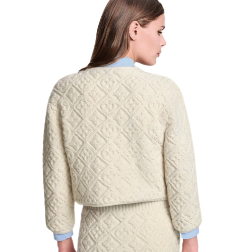This jacket has understated appeal in a chic, cropped shape with three-quarter length sleeves and a clean-cut front, which is fastened with discreet three clips. It is crafted from wool-cashmere blend toweling detailed with allover Monogram Flower accents in relief for a playful textured signature.