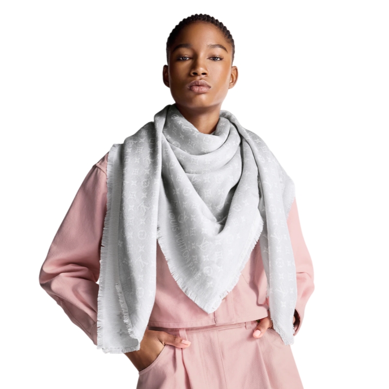 The Monogram Jacquard Denim shawl offers a modern take on the classic pattern. The cold-weather accessory delivers comfort and warmth thanks to its cotton, wool and silk construction. It is finished with a soft fringe and can be styled with other Monogram Denim accessories for a coordinated look.