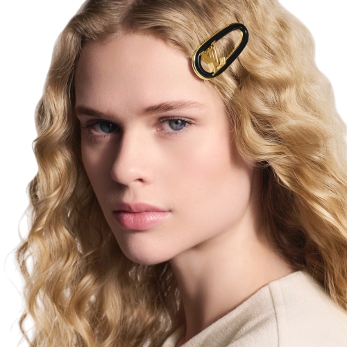 This chic, ultra-feminine Hair Clip expresses a discreet but distinctive Louis Vuitton signature. Its refined design features the famous LV Initials styled in gold-tone metal, inside an oblong ring of the House’s emblematic Monogram canvas. Easy to clip on and adjust, this on-trend accessory adds an elegant accent to any hairstyle.