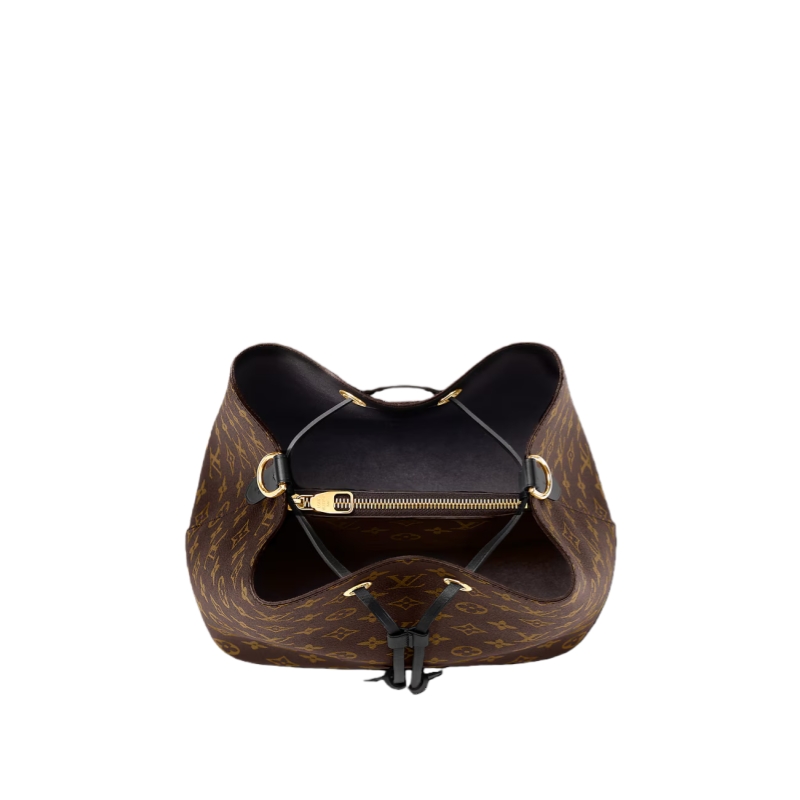 A true House icon, the NéoNoé bucket bag revisits a 1932 design by Gaston-Louis Vuitton. The original was created to transport bottles of Champagne in style; this modern version in Monogram canvas features a sleek shape, colorful leather trim and a matching bonded lining. The adjustable smart strap can be slung over the shoulder or lengthened for a trendy cross-body carry.