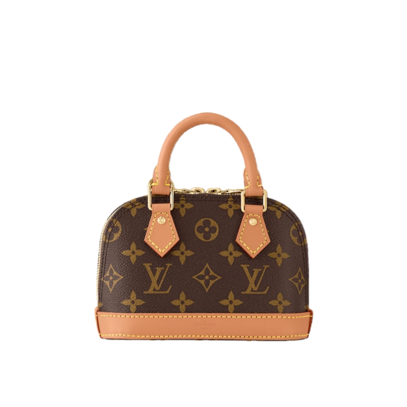 A miniature replica of the iconic Alma bag, the Nano Alma pairs Louis Vuitton's signature Monogram canvas with natural leather trim. This exquisitely crafted piece combines heritage appeal with modern functionality: the double-zip closure reveals a surprisingly spacious interior, while the two leather handles and adjustable, removable shoulder strap offer multiple carry options.