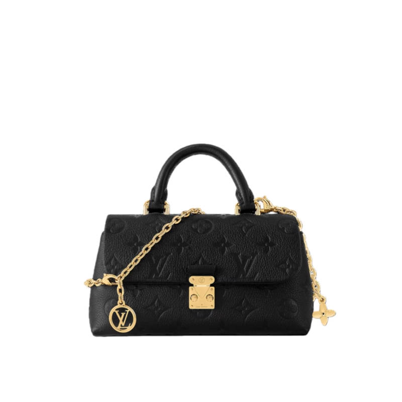The Nano Madeleine in Monogram Empreinte leather is a miniaturized version of the emblematic Madeleine bag. It is adorned with an iconic S-lock closure and a removable chain embellished with an LV Circle charm. The versatile design is roomy enough to store everyday essentials and can be worn cross-body, over the shoulder or carried by hand.