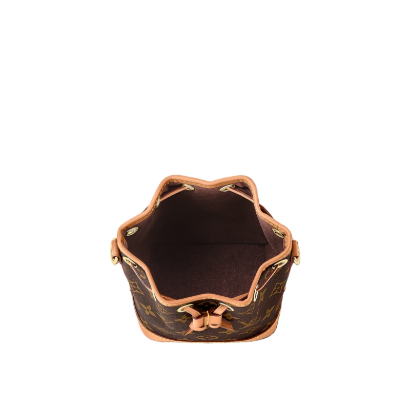 The Nano Noé is a miniature version of the iconic Noé bag, created in 1932. Crafted from Monogram canvas with trim in natural cowhide leather, this tiny Nano Noé combines heritage with modern functionality. Its removable handle and removable, adjustable strap offer multiple carry options, while it is spacious enough to hold essentials including keys, a card holder and a smartphone.