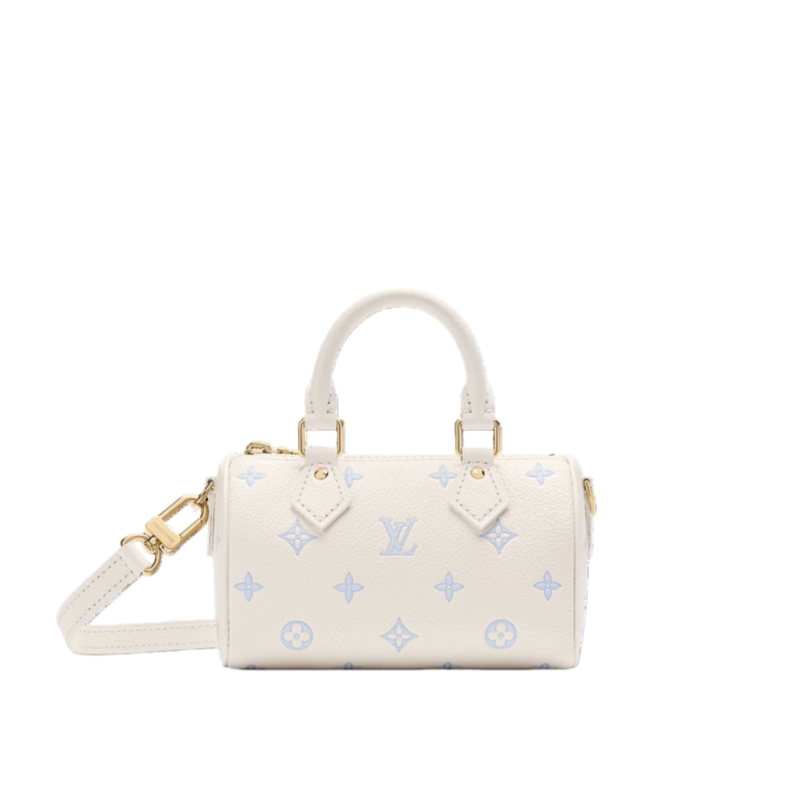 The iconic Nano Speedy is reimagined in a seasonal bi-color palette, offset against the House’s signature Monogram Empreinte leather. Ideal for day or evening, this edition is adorned with gold-toned hardware, and offers plenty of styling options with two handles and a removable strap. Inside, there is enough room to store daily essentials, including a compact wallet.
