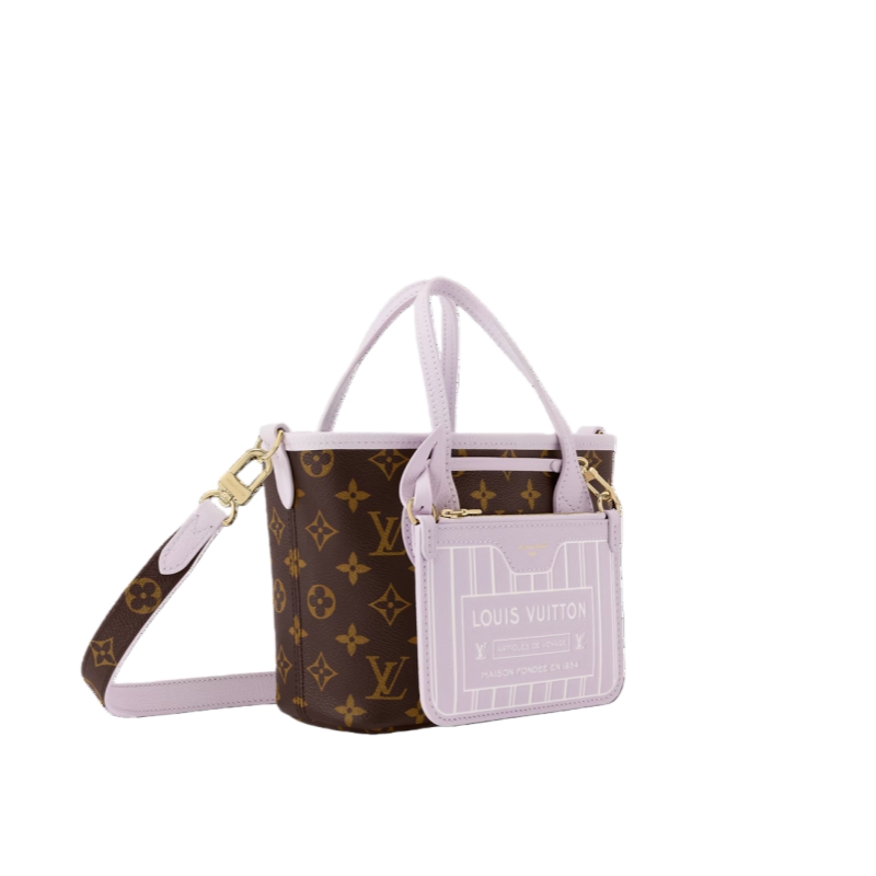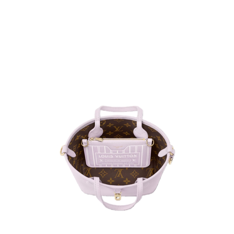 This edition of the Neverfull Bandoulière Inside Out BB can be worn two ways: showcasing Misty Lilac grained leather on one side, or reversed to feature the House’s signature Monogram canvas. It comes with a removable zipped pouch that can be used on its own or attached as an exterior pocket. Gleaming gold-toned hardware adds the final touch. Use the longer strap to wear it crossbody.