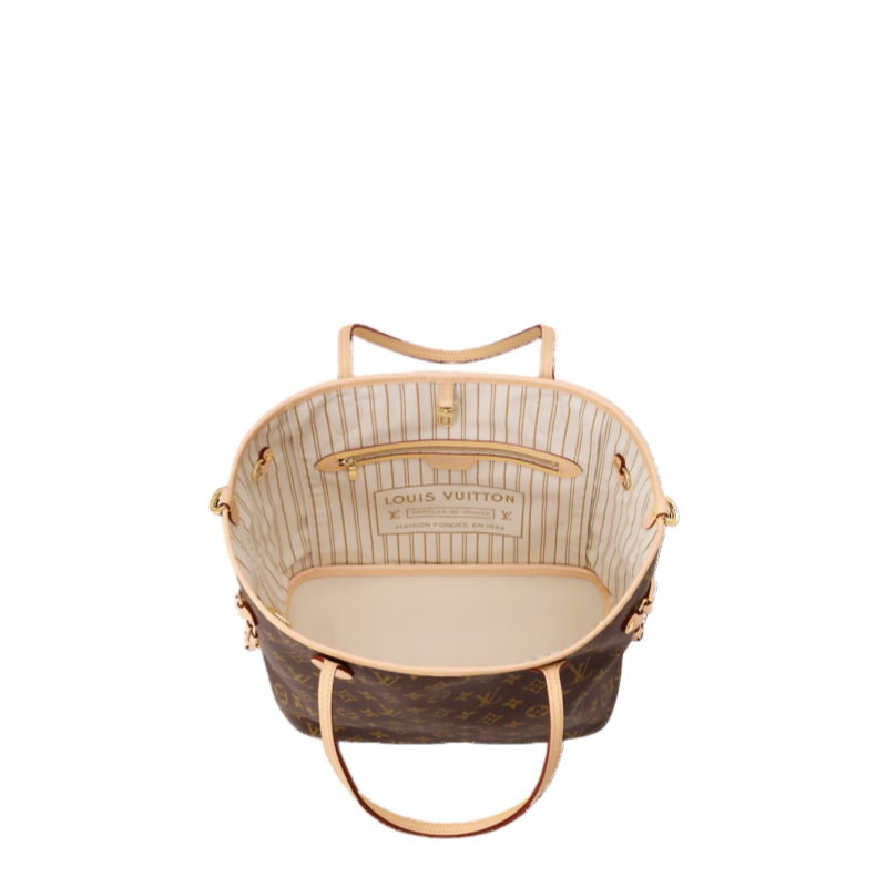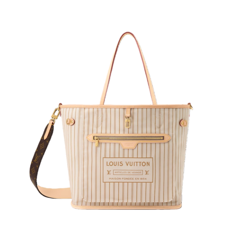 This elegant edition of the Neverfull Inside Out MM is crafted from Monogram canvas and inverts to a chic and versatile Sand colorway on the reverse. It is elevated with a leather strap, gold-toned hardware, and a Louis Vuitton label that celebrates the House’s iconic heritage. The capacious design fits a laptop, as well as everyday essentials and can be worn over the shoulder or carried by hand.