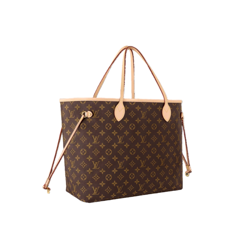 The Neverfull GM tote unites timeless design with heritage details. Made from supple Monogram canvas with natural cowhide trim, it is ultra-roomy but never bulky, with side laces that cinch for a sleek allure or loosen for a more casual look. Slim, comfortable handles slip easily over the shoulder or arm. Lined in colorful textile, it features a removable pouch which can serve as a clutch or an extra pocket.