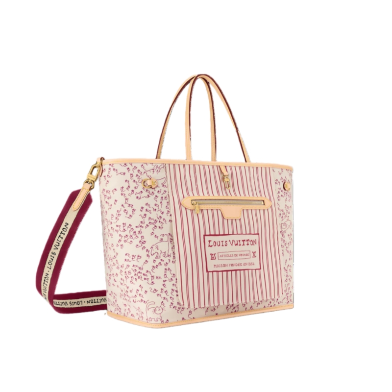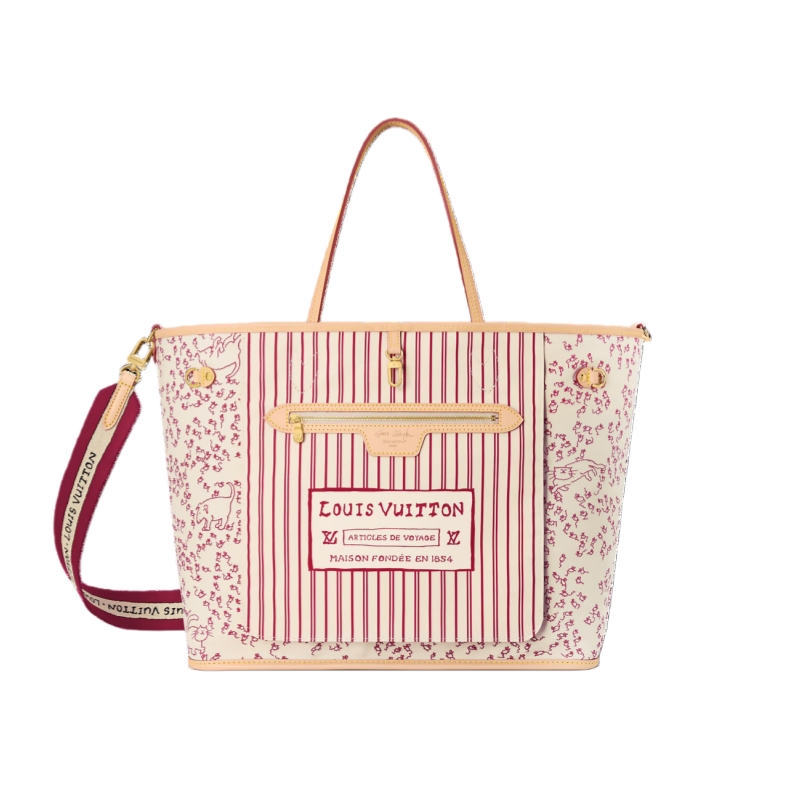 This edition of the Neverfull Inside Out GM unites heritage details with the artistic talent of American Vogue’s former Creative Director at Large, Grace Coddington. Part of the LV Travels With collection, the reversible tote showcases classic Monogram canvas on one side, and an exclusive cat-print on the reverse. The textile strap and iconic Louis Vuitton label are reimagined in Coddington’s handwriting, adding a personal and unique finishing touch.