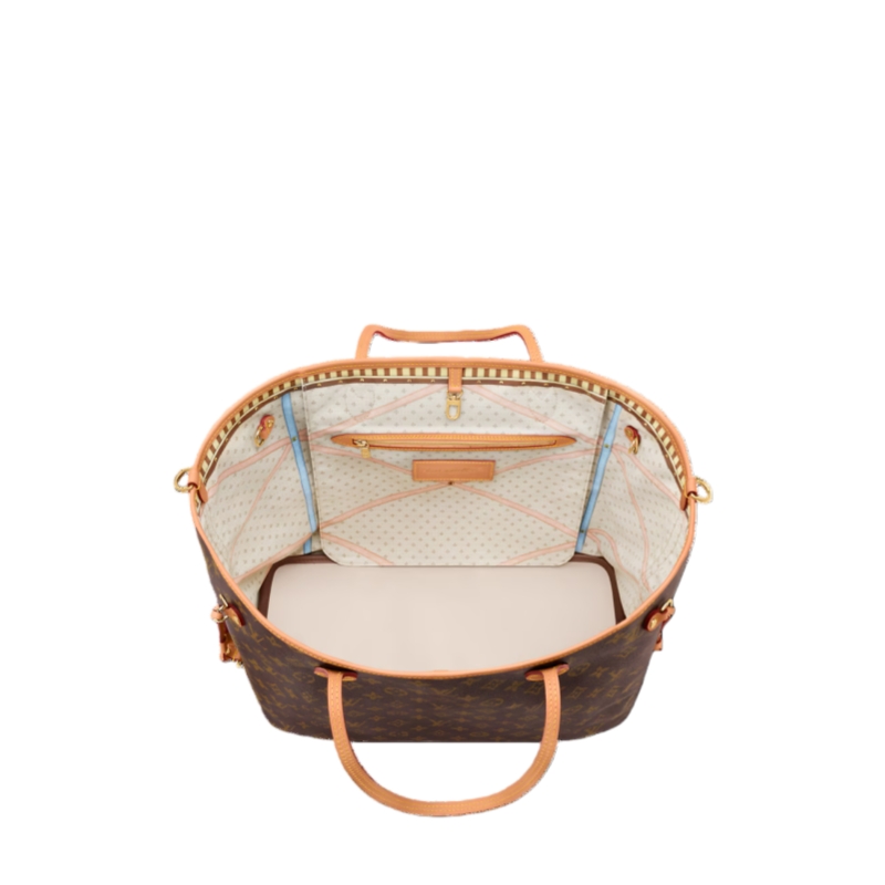 The iconic Louis Vuitton Monogram celebrates 130 years of existence in 2026, and this exclusive edition of the Neverfull Inside Out GM is designed to honor the occasion. This capacious tote is crafted from canvas, but can also be styled with the textile lining on the outside – and as with all designs from the Monogram Anniversary collection, it comes with a special address tag and celebratory label on the inside.