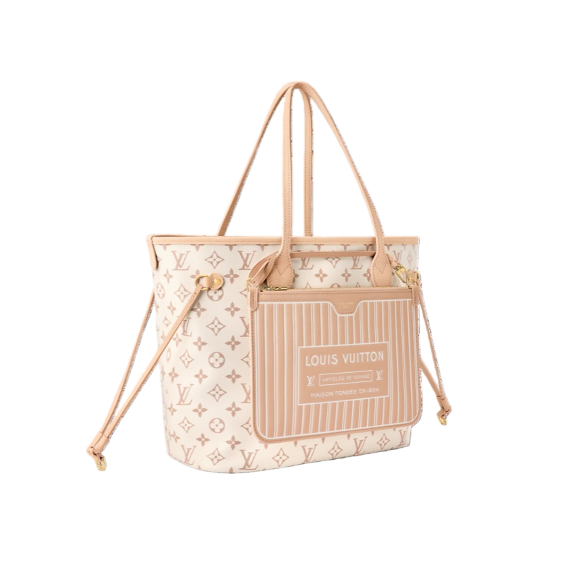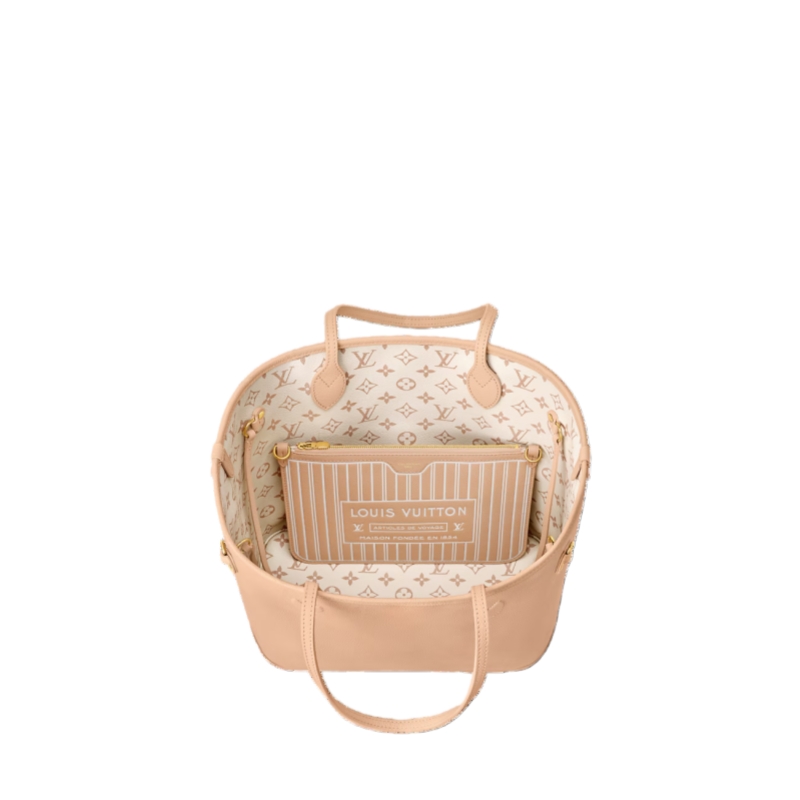This reversible Neverfull Inside Out MM is the perfect work-to-weekend companion. It is crafted from Monogram Dune canvas on one side and smooth Hazelnut leather on the reverse, elevated with gold-toned hardware. The roomy profile is sized to fit a laptop, as well as other daily essentials, and is fitted with side laces and hooks to adjust the shape if desired. Use the removable zipped pouch for smaller items.