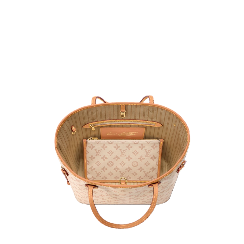 A true collector’s piece, this Neverfull MM pays tribute to the heritage of Louis Vuitton and the iconic 130-year-old Monogram. Inspired by an archival client register book, this reimagined take on the signature pattern is offered in a timeless colorway on canvas. Capaciously sized, it fits everyday essentials, including a laptop, and is fitted with a striped zipped pocket to keep smaller items secure.