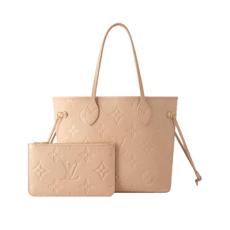 Perfect for city commutes and beyond, the iconic Neverfull MM tote unites timeless design with heritage details. This version is crafted from cowhide leather patterned with the House's Monogram and has adjustable side laces to cinch the profile. It is is capacious enough to store a 13” laptop. Use the removable zipped pouch to keep smaller items organized.