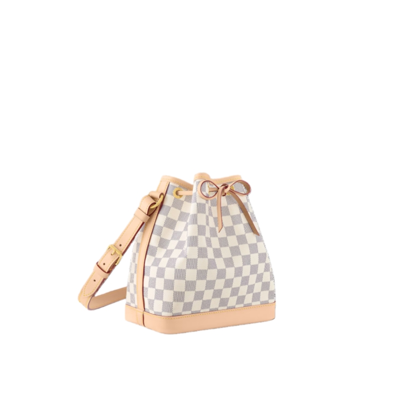 The Noé BB bucket bag harks back to a design from 1932. A Champagne producer asked Gaston-Louis Vuitton to develop a sturdy, stylish bag in which he could transport five bottles of bubbly. This charming version in body-friendly Damier Azur canvas retains key features of the original – the iconic shape and drawstring closure – but is made for modern life. The leather strap adjusts for comfortable shoulder or cross-body wear.