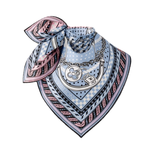 The creative design of the Ocean Bandana square was inspired by the allure of nautical adventure. Printed on sumptuous silk, it updates the classic bandana look with House motifs like straps and chains, mixed with the historic Monogram and Damier patterns. This elegant square is a true statement accessory, imbued with the spirit of travel.