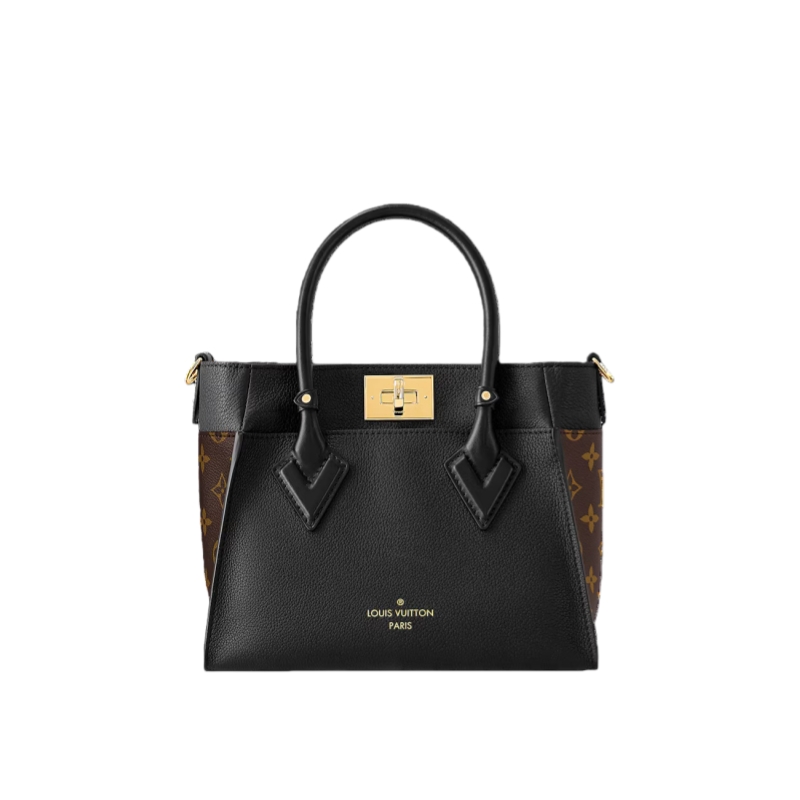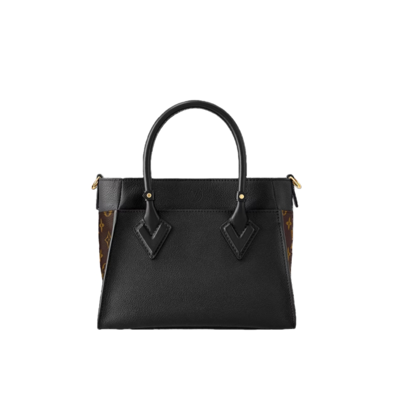 The On My Side PM is a compact tote bag made from soft calf leather with side panels in classic Monogram canvas. This adorable everyday bag boasts a wide removable strap for on-trend shoulder and cross-body wear as well as two top handles for hand and elbow carry. Two large outside pockets give easy access to essentials.