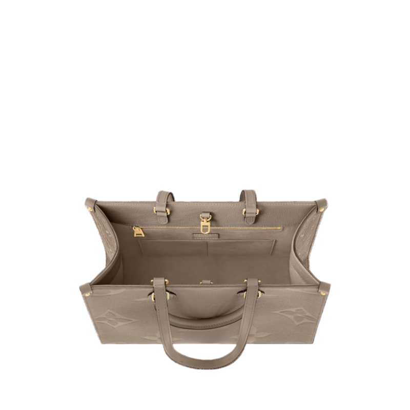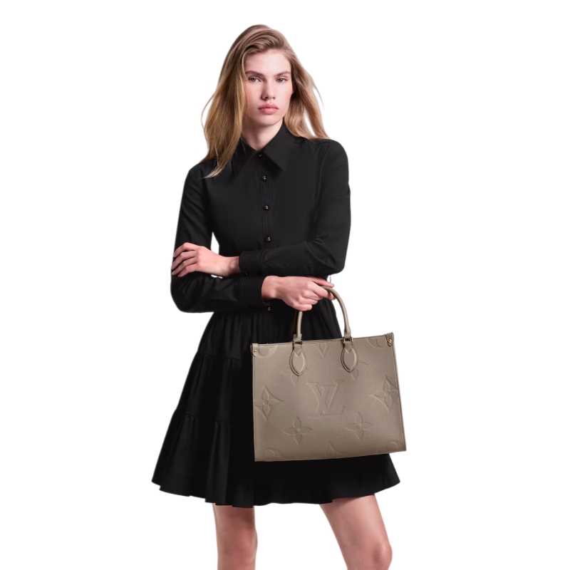 For Spring 2021, Louis Vuitton launches the Onthego MM tote bag in grained Monogram Empreinte, a soft leather that is embossed with a large and modern Monogram pattern. Thanks to the square shape, it boasts a generous capacity and can easily fit a laptop. Its articulated top handles and shoulder straps give carrying options.