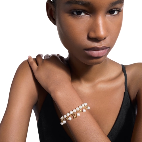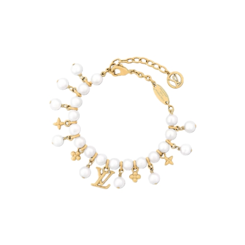 Crafted with meticulous attention to detail, the Pearl River bracelet offers a blend of contemporary sophistication and timeless elegance. A cascade of white resin pearls, subtly adorned with Monogram Flowers, flows gracefully across the wrist, alternating with Monogram charms in shimmering gold-colored metal. Ideal for adding a refined signature accent to an everyday outfit.