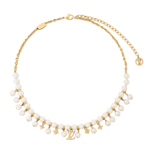 With its meticulously detailed design and sumptuous materials, the Pearl River necklace combines contemporary refinement with timeless elegance. Its fine-linked chain, crafted in gold-colored metal, unfurls a cascade of white resin pearls adorned with delicate Monogram Flowers, interspersed with signature Monogram charms. Perfect for adding a touch of understated sophistication to an everyday look.