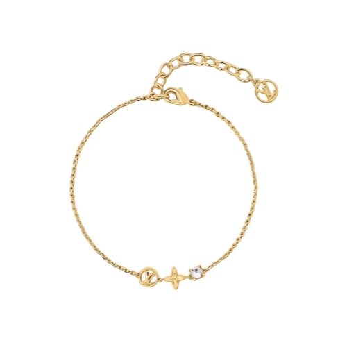 The Petit Louis bracelet is a delicate piece for casual use that subtly incorporates the iconic Louis Vuitton symbols like the Monogram Flower and LV Circle. The bracelet has a single crystal and an LV Circle at the end of the chain. A matching necklace, ring, and pair of earrings are also available in the collection.