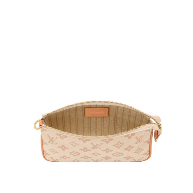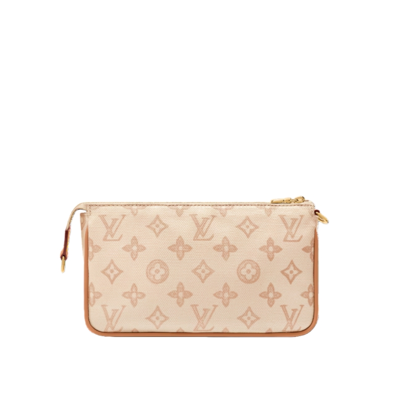 Celebrating 130 years of the iconic Louis Vuitton Monogram, this exclusive Pochette Accessories is offered in an elegant colorway that complements daytime and evening looks. It is crafted from Monogram Origine canvas with smooth cowhide trims and is elevated with a removable address tag, paying tribute to the House’s travel heritage.