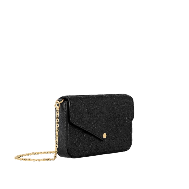 The Pochette Félicie is crafted from Monogram Empreinte leather, embossed with Louis Vuitton's signature Monogram pattern. Designed to adapt to modern lifestyles, this envelope-style pouch contains a spacious compartment with two removable pockets: one zipped, one with card slots. It can also be carried in different ways thanks to a removable chain.