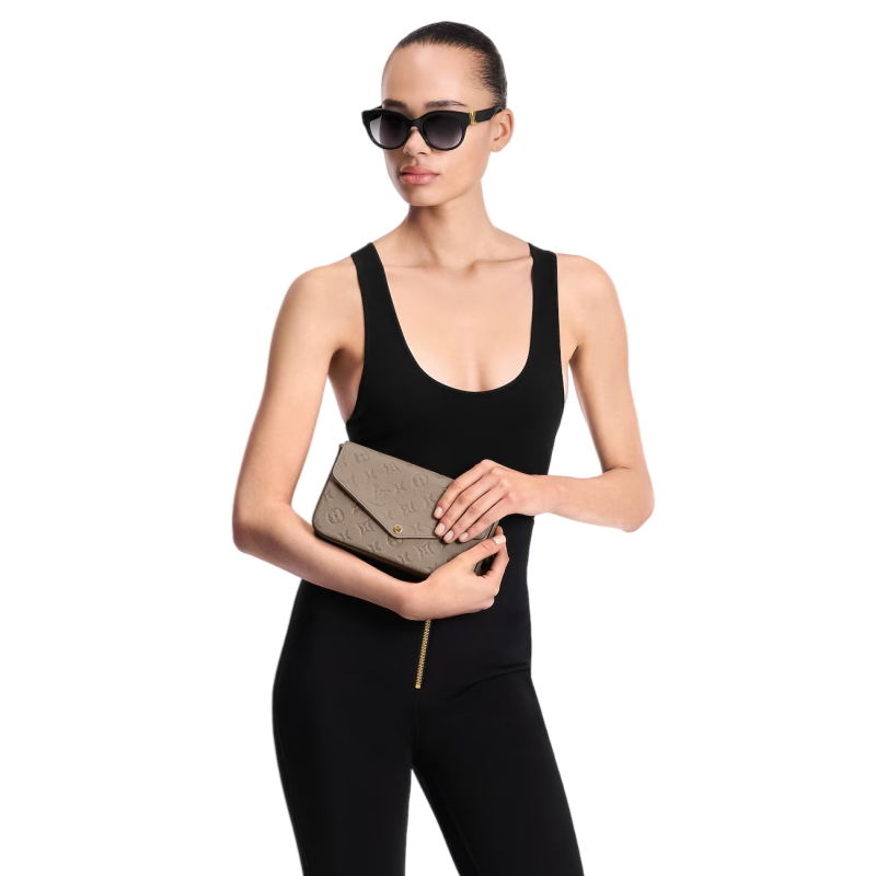 The Pochette Félicie is crafted from Monogram Empreinte leather, embossed with Louis Vuitton's signature Monogram pattern. Designed to adapt to modern lifestyles, this envelope-style pouch contains a spacious compartment with two removable pockets: one zipped, one with card slots. It can also be carried in different ways thanks to a removable chain.