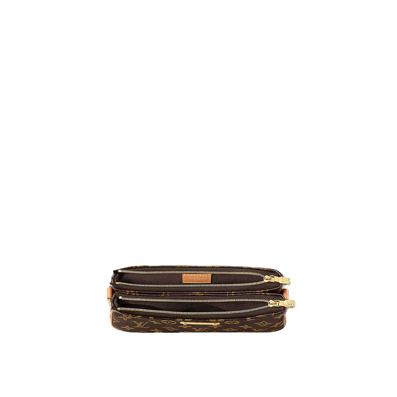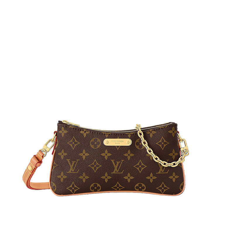 The Pochette Liv in Monogram canvas is designed to fit snugly under the arm. It comes with a detachable gold-tone chain and a removable, adjustable double strap in Louis Vuitton's emblematic natural cowhide leather. A secure, double-zip closure and an engraved, gold-tone plaque finish this stylish piece.