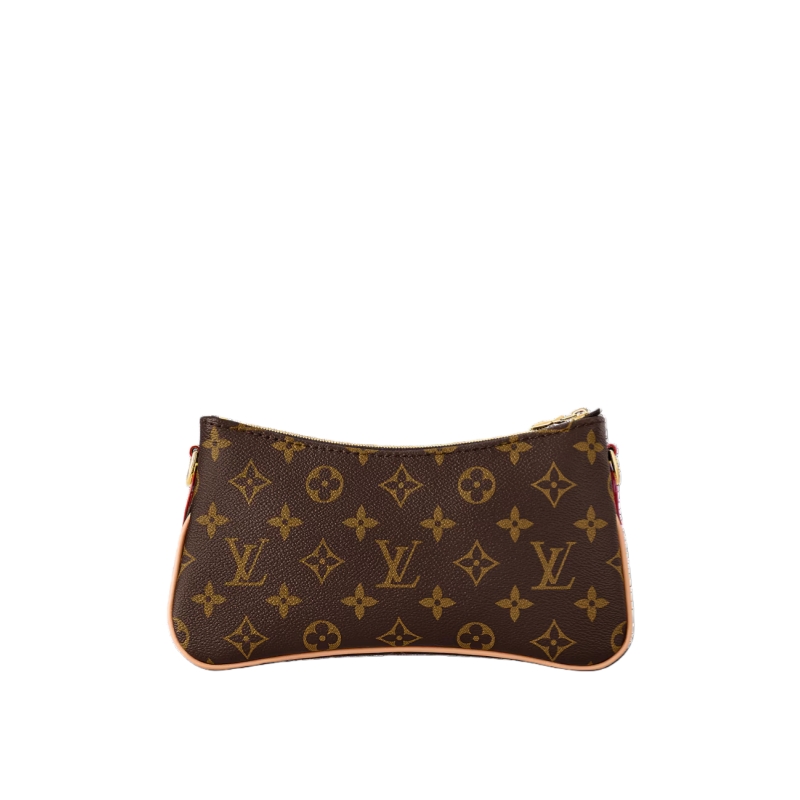 The Pochette Liv in Monogram canvas is designed to fit snugly under the arm. It comes with a detachable gold-tone chain and a removable, adjustable double strap in Louis Vuitton's emblematic natural cowhide leather. A secure, double-zip closure and an engraved, gold-tone plaque finish this stylish piece.