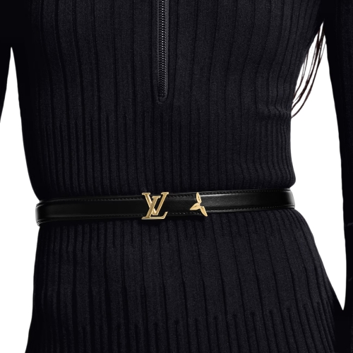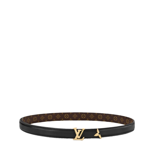 The Pretty LV belt highlights the House’s expert workmanship with a dual accent of gleaming gold-tone metal. The LV Initiales buckle is paired with an end tip in the form of a precisely cut Monogram Flower. Reversible, it offers a choice of sumptuous leather or signature Monogram canvas. An elegant, adaptable accessory for day or evening wear.