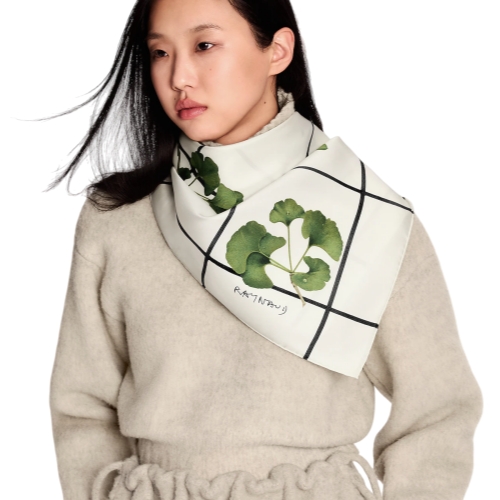 Originally created for Louis Vuitton in 1988, the Printemps By Jean-Pierre Raynaud square features a poetic pattern evoking the beauty of springtime. The French artist’s design juxtaposes a delicate scattering of leaves with a geometric grid to create an intriguing contrast. Expertly printed on premium silk, Raynaud’s artwork transforms a fashion accessory into a wearable masterpiece.