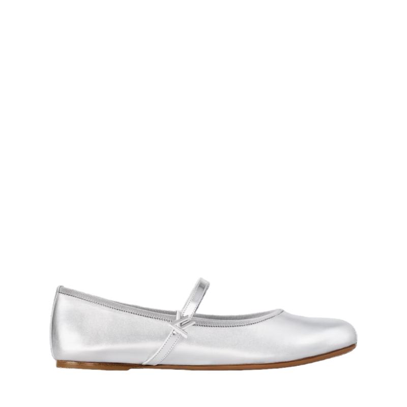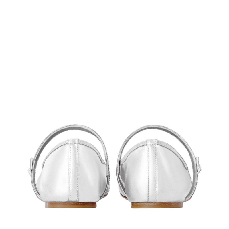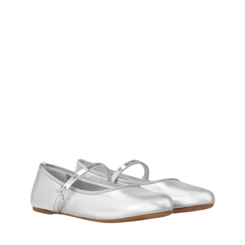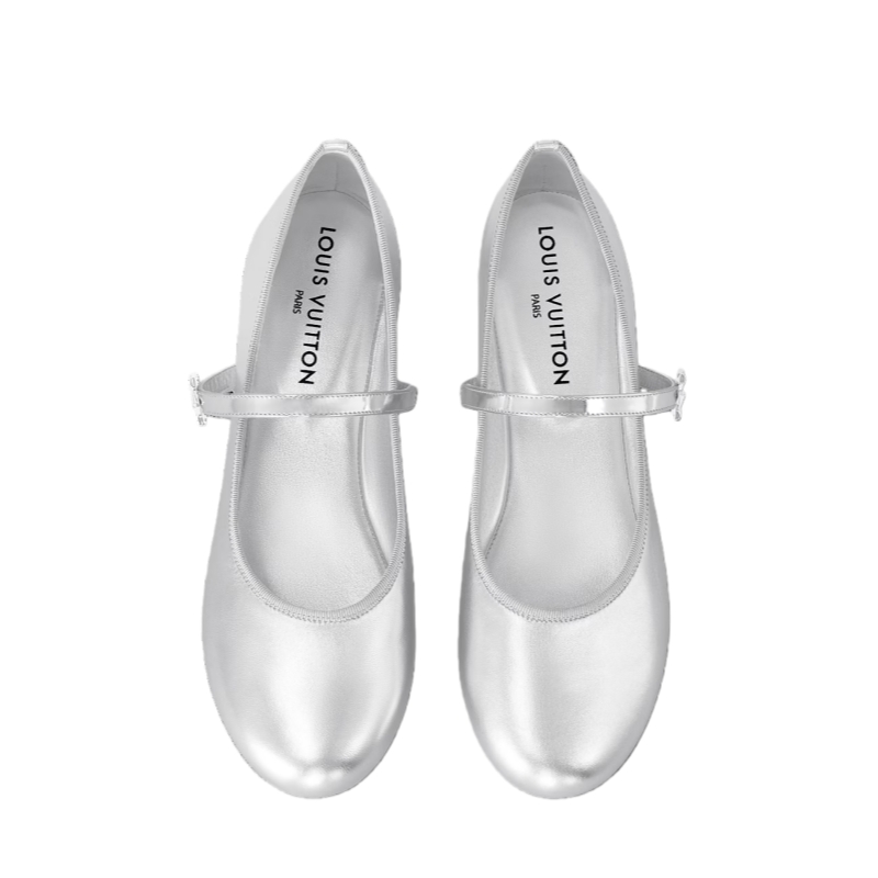 This eye-catching interpretation of the Romy flat ballerina comes in metallic lambskin. This model's combination of soft leather, rounded toe and supple outsole makes it extremely comfortable to wear. This timeless ballet pump is elevated by the refined detail of a patent-leather strap embellished with an LV Twist accessory.