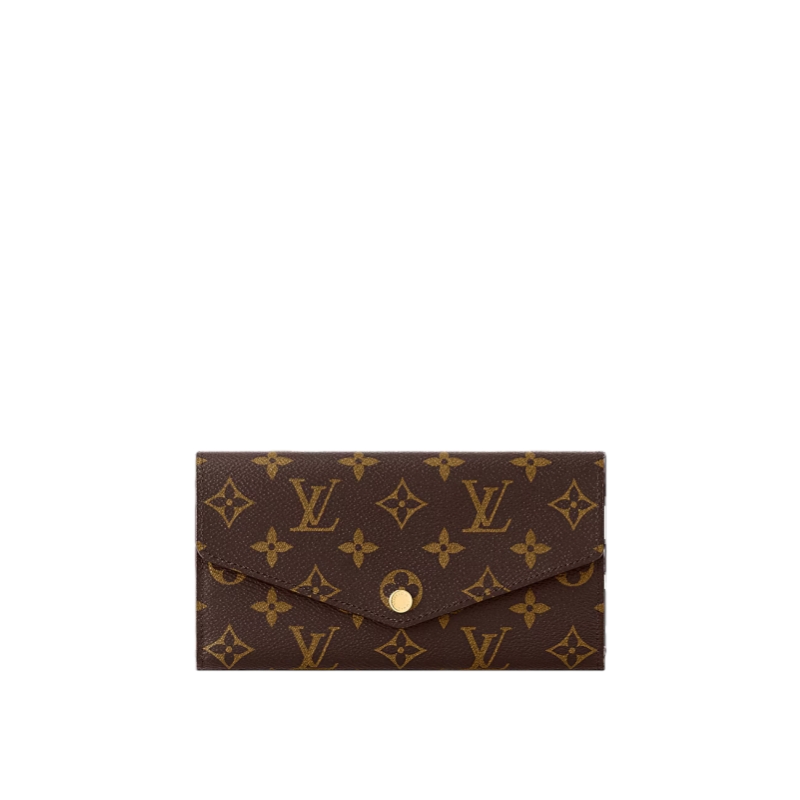 One of Louis Vuitton's classic models, the Sarah wallet combines Monogram canvas with a grained-leather lining. Its elegant envelope-style design conceals a spacious interior with two large compartments, a central zipped coin pocket and multiple card slots. The perfect choice to keep all essentials in one safe place.
