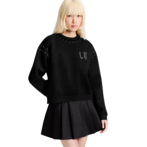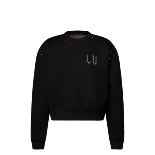Rebellious touches refresh this staple sweater for the season. It is cut from soft, comfortable interlock cotton jersey in a casual fit finished with ribbed hems. Silver-toned studs highlight the crew neckline and shoulders, while studded LV Initials adds a gothic signature to the chest.