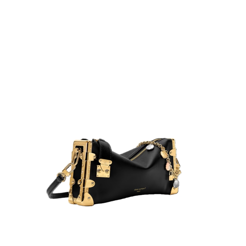 The LV Confetti collection presents this stylish edition of the Slim Trunk handbag, which offers a new shoulder-carry option. Crafted from calf leather in a timeless Black shade, it is defined by sleek gold-toned hardware including trunk-inspired corners and a signature S-lock. The removable chain is embellished with multiple charms detailed with hand-applied enamel, demonstrating the House’s dedication to meticulous craftsmanship.