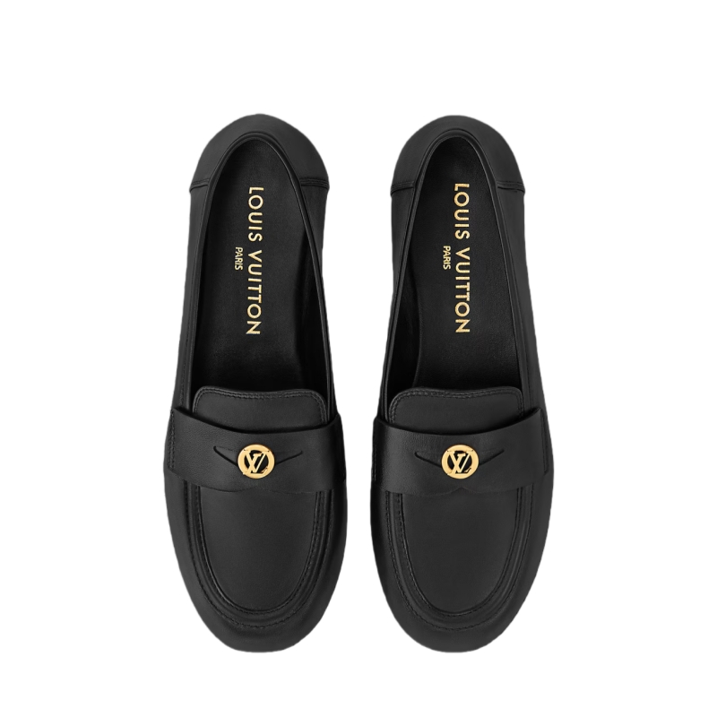 The Soho flat loafer is crafted from extremely supple lambskin for a refined look and all-day comfort. This model has a rounded toe and a classic, cut-out strap, which is embellished with a gold-tone LV Circle accessory. A fine leather outsole finishes this timeless design.