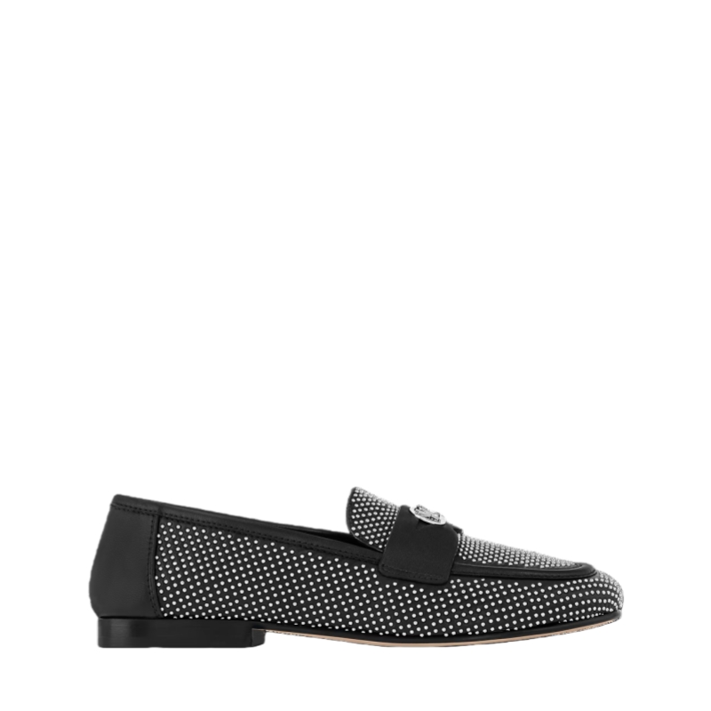 The Soho flat loafer is reinterpreted this season in supple lambskin, which is decorated with dozens of tiny, silver-toned studs. This refined model is distinguished by its sleek lines, rounded toe and cut-out strap, which is signed with an LV Circle accessory. A fine leather outsole completes this design.