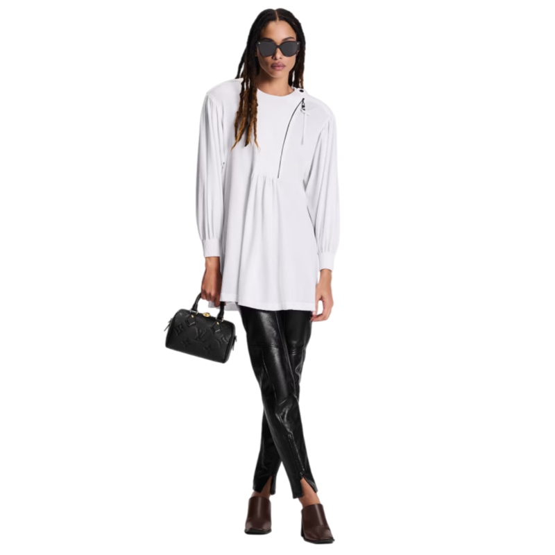 The Speedy Bandoulière 20 is an on-trend compact handbag, just the right size to carry daily essentials. It’s made from smooth grained Monogram Empreinte leather, embossed with an Oversized Monogram pattern. The hardware and padlock are a golden color. It has a delicate chain strap – removeable and adjustable – in addition to two Toron handles.