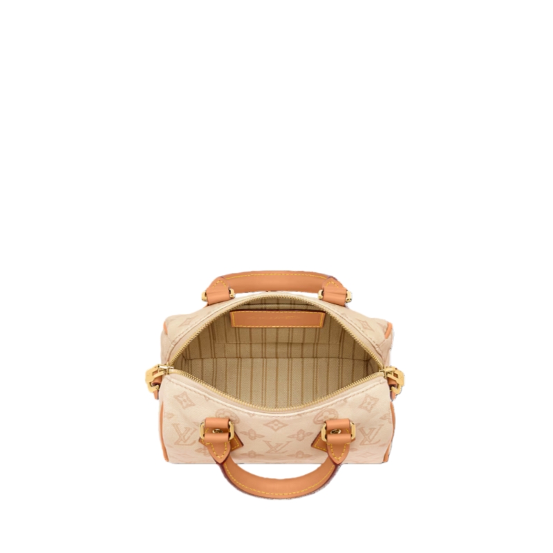Introducing the House’s Monogram Origine canvas, designed to honor the 130th-anniversary of the iconic Louis Vuitton motif. This celebratory edition of the Speedy Bandoulière 20 is trimmed with cowhide and is accented with an exclusive address tag and gold-toned padlock. It can be worn multiple ways, and reveals a striped lining with a flat pocket to keep smaller items secure.