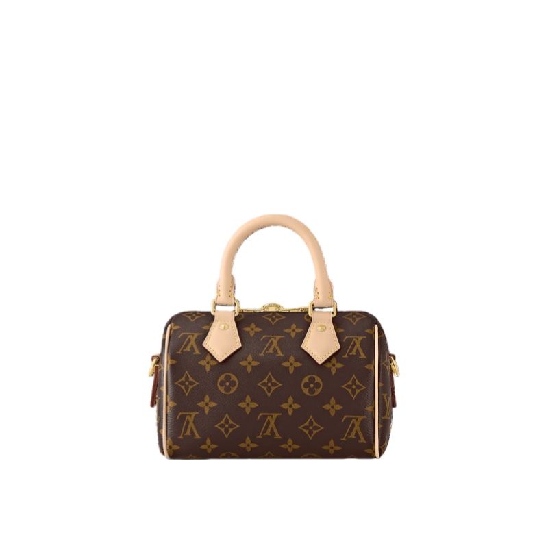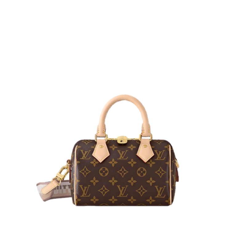 The Speedy Bandoulière 20 hand bag takes on classic Louis Vuitton allure in Monogram canvas with natural cowhide-leather trim and gold-color hardware. Inspired by the House’s emblematic travel bag, its distinctive shape is adorned with two rolled-leather top handles, padlock. A detachable two-color strap, signed Louis Vuitton, enables shoulder and cross-body wear.