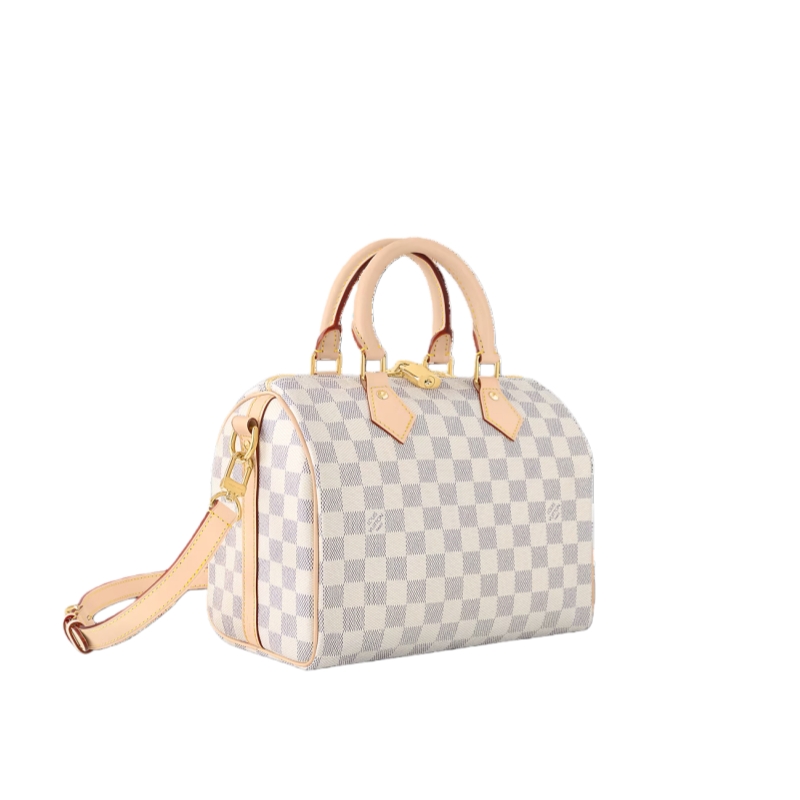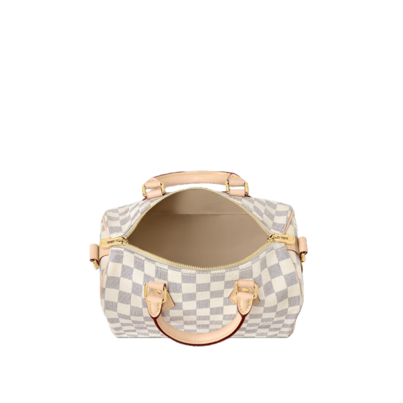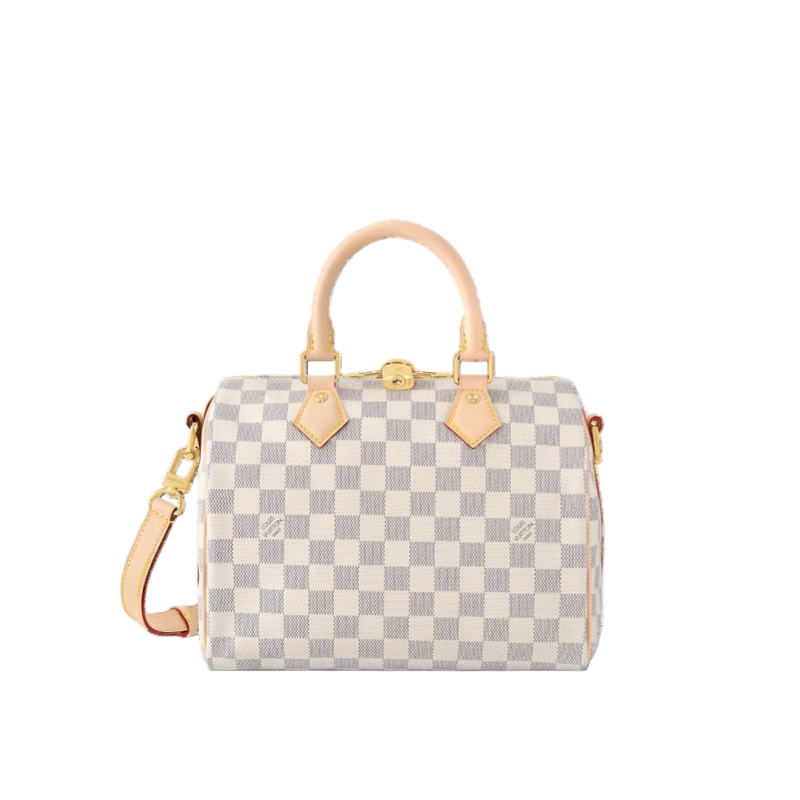 The Speedy Bandoulière 25 handbag in fresh Damier Azur canvas is an ideal choice for summer in the city. Originally created for travelers in the 1930s – the name refers to the era’s rapid transit – every feature of the Speedy’s design is iconic, from its unmistakable shape to the rolled leather handles, engraved padlock and detachable strap.