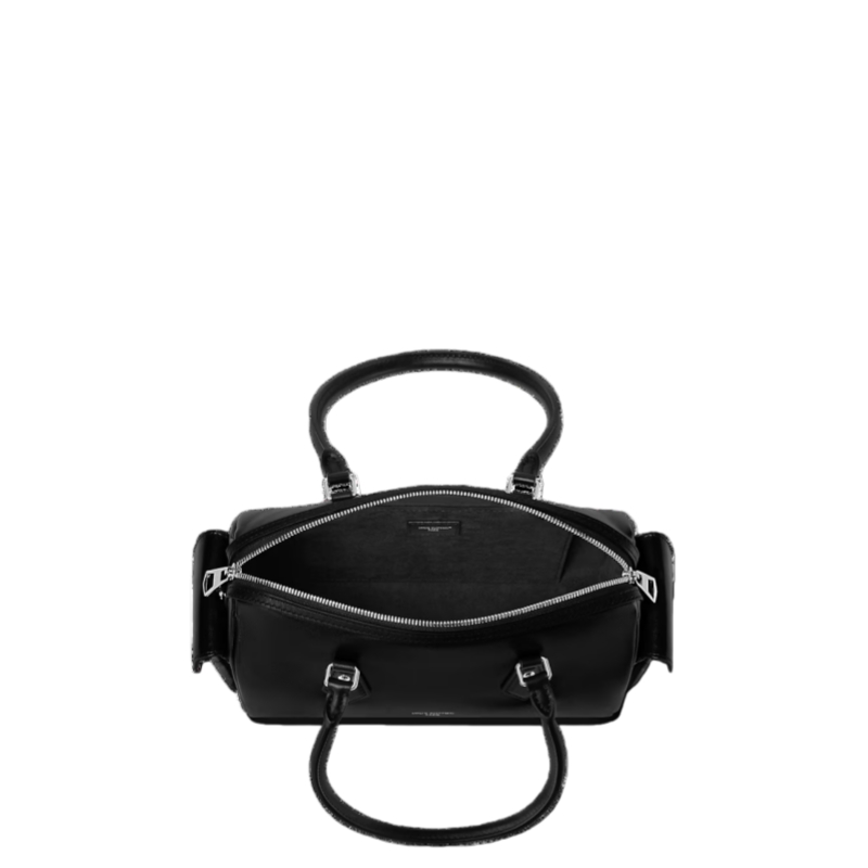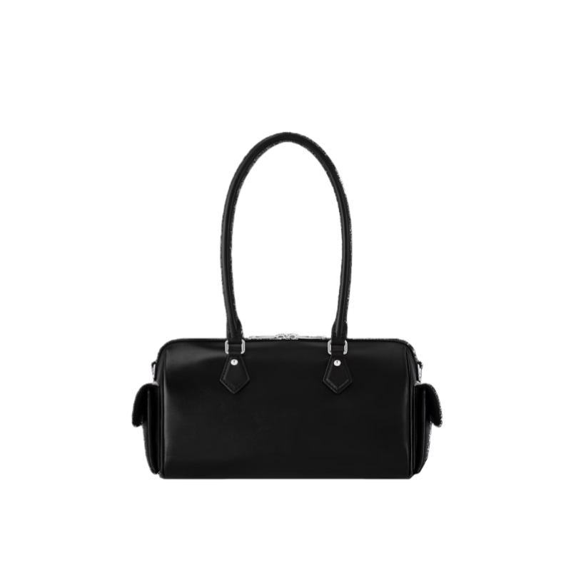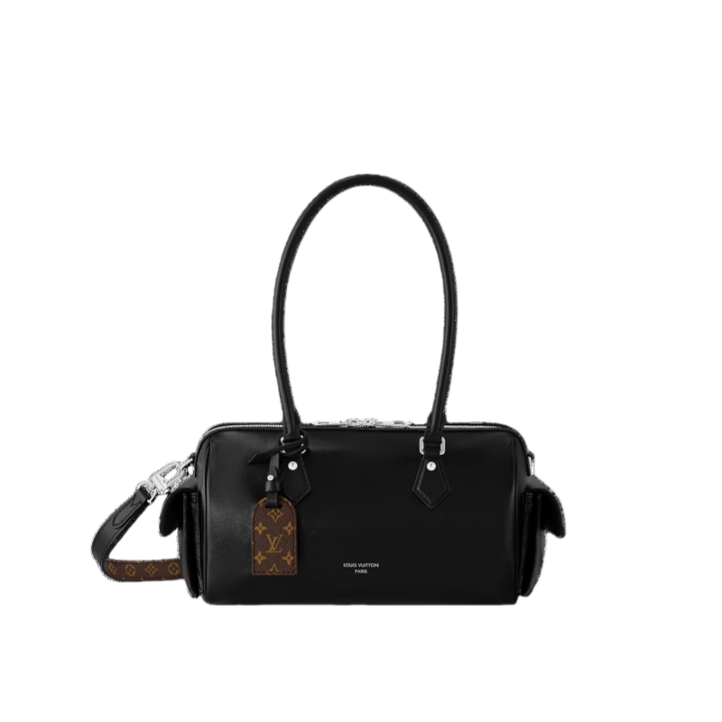 Part of the LV Vibe collection, the Speedy Cargo reinterprets the original 30s Speedy handbag with a neo-rock edge. It is crafted from glossy lambskin and accented with a Monogram address tag, paying tribute to the House’s trunk-making heritage. Capaciously sized for everyday essentials, it offers multiple carry options thanks to the removable leather strap.