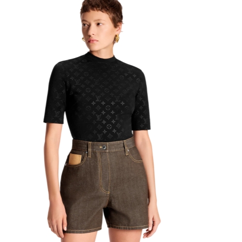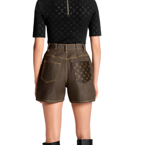 These clean-cut, high-rise shorts are crafted from denim in a sophisticated seasonal shade with complementary yellow topstitching highlighting the construction. In homage to the House’s emblematic Speedy bag, the ticket pocket is made from natural leather and discreetly embossed with a Louis Vuitton Paris signature, while the back pocket is playfully accented with Monogram canvas.
