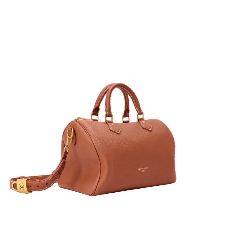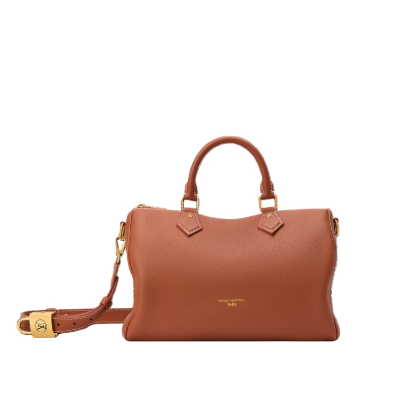 The perfect travel companion, this Low Key edition of the Speedy Soft 30 is crafted from supple calf leather in a timeless shade. Adorned with a signature LV padlock in a aged gold-toned finish, this sleek design comes with a removable strap for multiple carry options. It is sized to fit everyday essentials and includes a flat pocket on the inside.