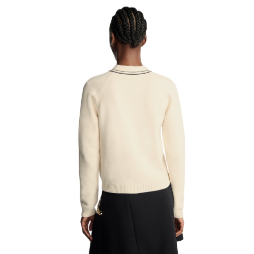 This cardigan is both elegant and cozy for versatile styling in a rich blend of wool and cashmere. It has an understated nautical feel thanks to contrasting LV buttons and graphic stripes that highlight the front and pockets, while LV Initials in a fuzzy bouclé finish complete the look with a subtle signature.